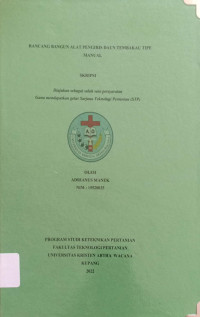 This research was conductedin oktober 2021 al the agrucultural engineering laboratory of FTP-UKAW. This study aims to determine the desing of the manual type of tobacco leaf slicer. The use of this research is as a reference information and the use of appropriate tecnologi. The results of this study indecate that structurally and the perfomance of the tool shows that the working capacity of the manual type tobacco leaf slicer is. With a working capacity of 4.748 grams/second, or 17.09 kg/hour. The percentage of unsliced tobacco is 4.98%. and the precentage of weight after being sliced was 95.25%. in the design of this tool using a slicing knife that serves to cut tobacco leafes, the length of the cutting knife is 40 cm. And tobacco leaf material which is cered for 2 days.